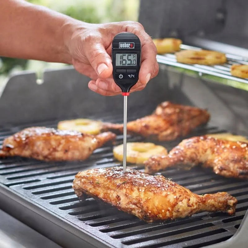 Hierdie Weber-kitsleestermometer waarborg elke keer perfekte geroosterde vleis. Dit is ontwerp om akkurate lesings in óf Celsius óf Fahrenheit vinnig te vertoon. Jy kan op die termometer vertrou om jou te vertel wanneer jou kos die ideale temperatuur is, en vermy beide ondergaar en oorgaar. Die kerntemperatuur is die sleutel vir perfekte rooster, en hierdie saktermometer bied betroubare en vinnige temperatuurlesings, so jy hoef nie die rooster te lank oop te hê nie.