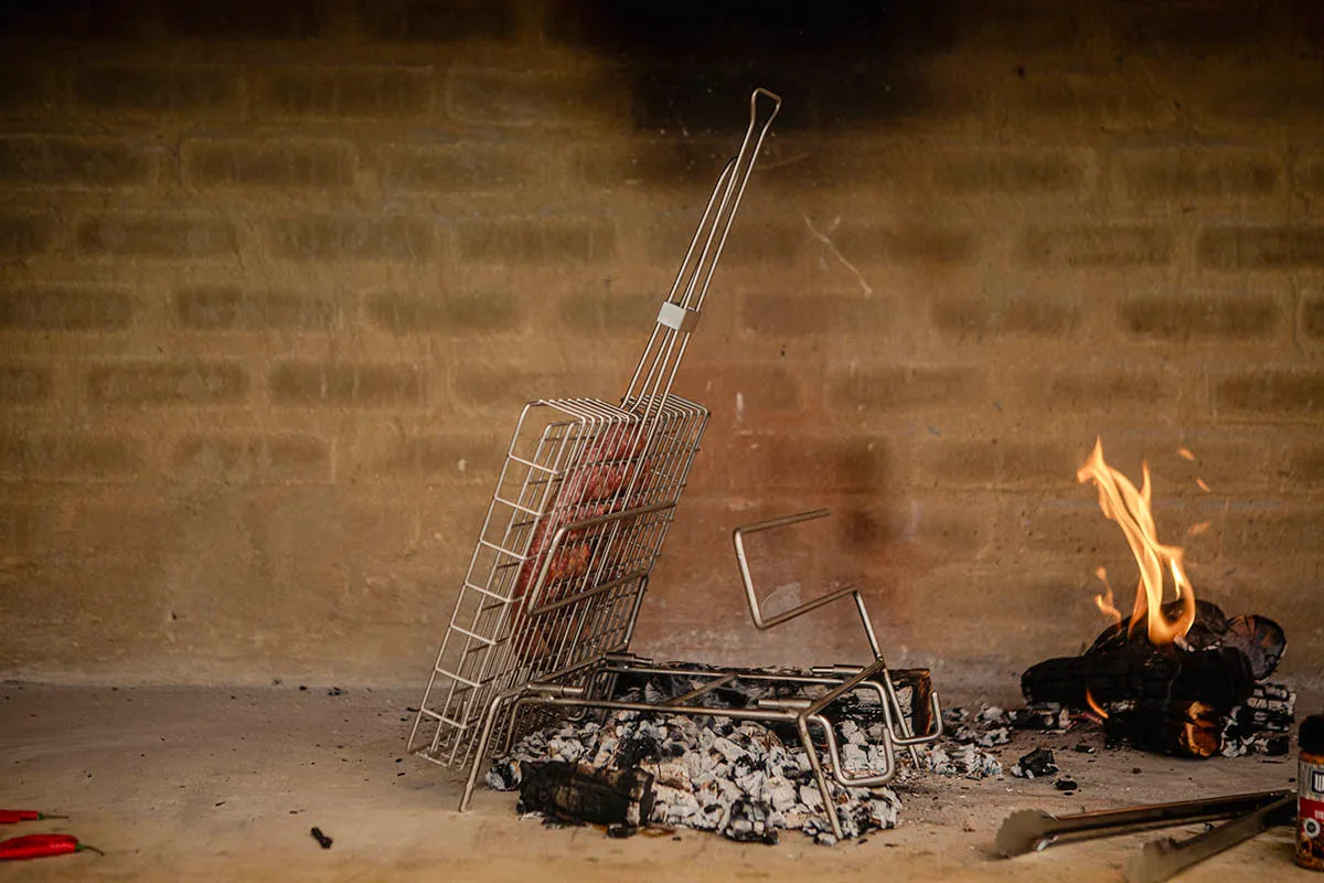 Die Makabrai val in drie dele in wat kompak en ruimtebesparend is. Dit is maklik om aanmekaar te sit en sal nie omval of ineenstort wanneer jy braai nie. Gebruik jou standaard of groot opvoubare rooster saam met Makabrai vir die perfekte braai.