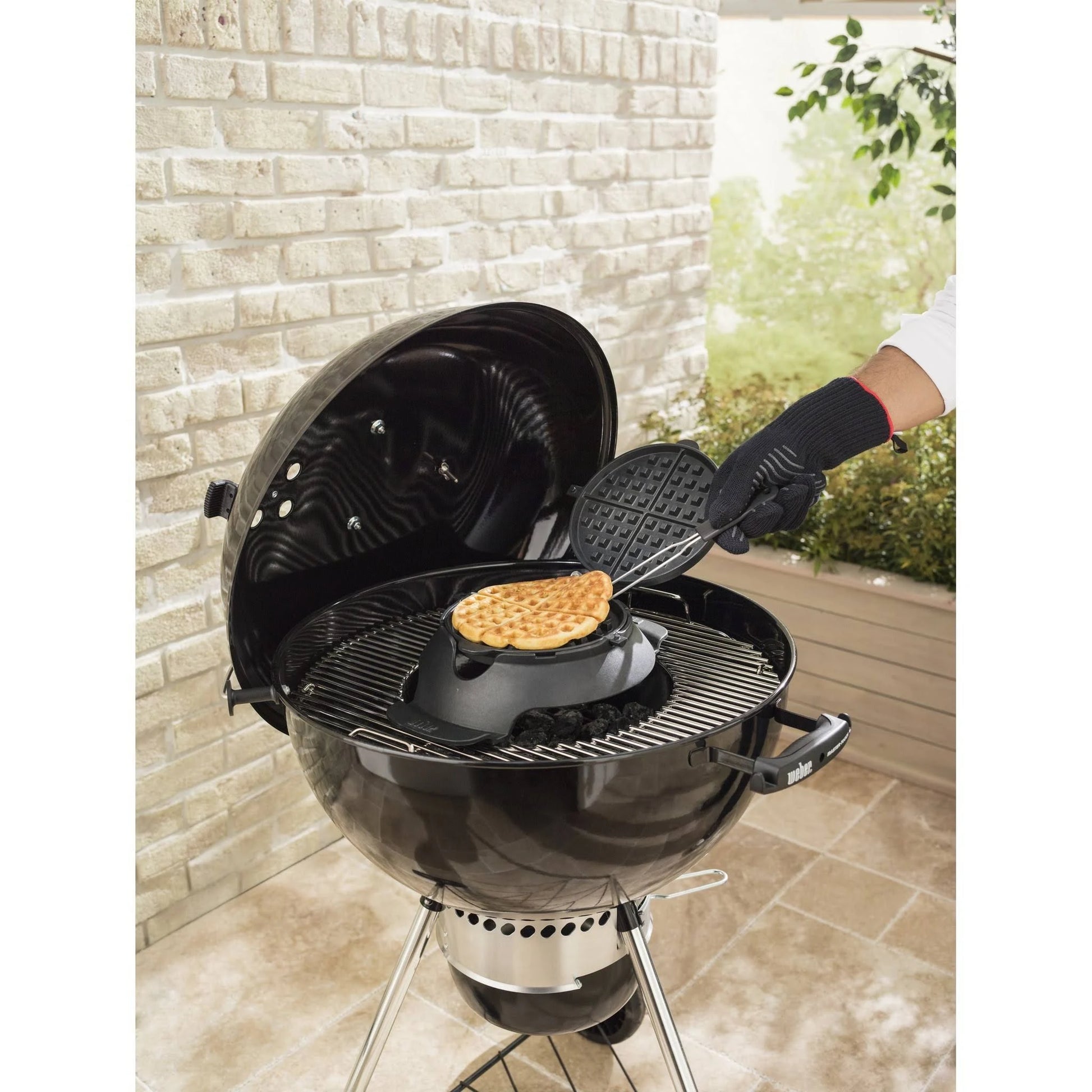 Word wakker met die dekadente geur van vars geparste wafels met die Weber Wafel en Toebroodjie Maker. Met omkeerbare stukke kan jy goudbruin wafel- en kaasgevulde toebroodjies maak, alles gaargemaak in porselein-emalje-bedekte gietyster vir maklike skoonmaak. Boonop is die GBS-wafel- en toebroodjiemaker versoenbaar met Gourmet BBQ System-roosters, wat elke maaltyd tot luukse hoogtes verhef.