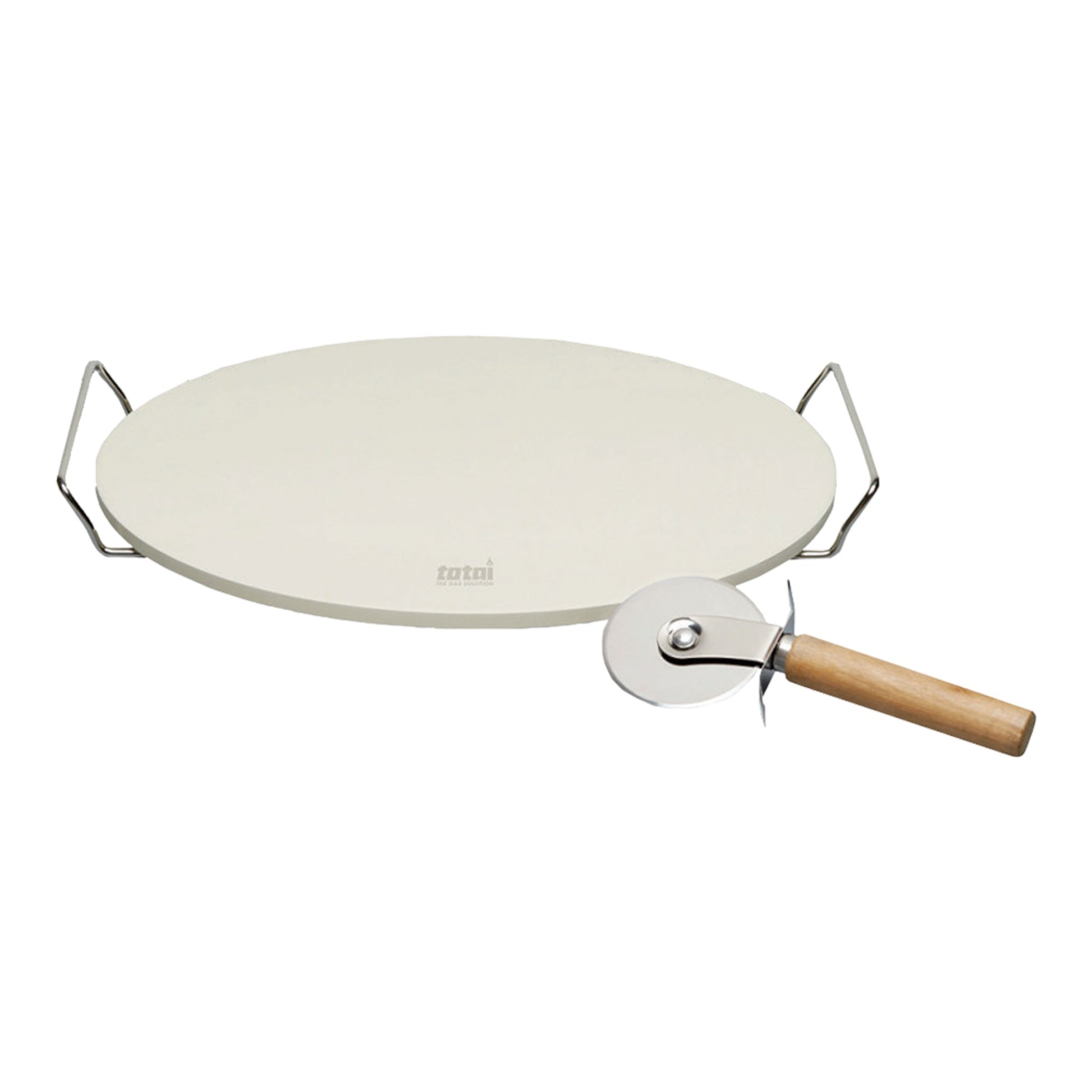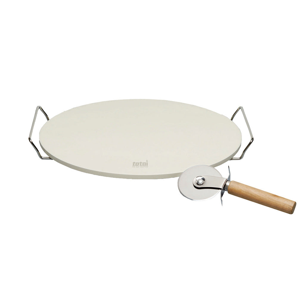 Crafted from premium ceramic material, this pizza stone evenly distributes heat for a perfectly crispy crust every time. The included cutter ensures that you can easily slice and serve your delicious creations with ease.