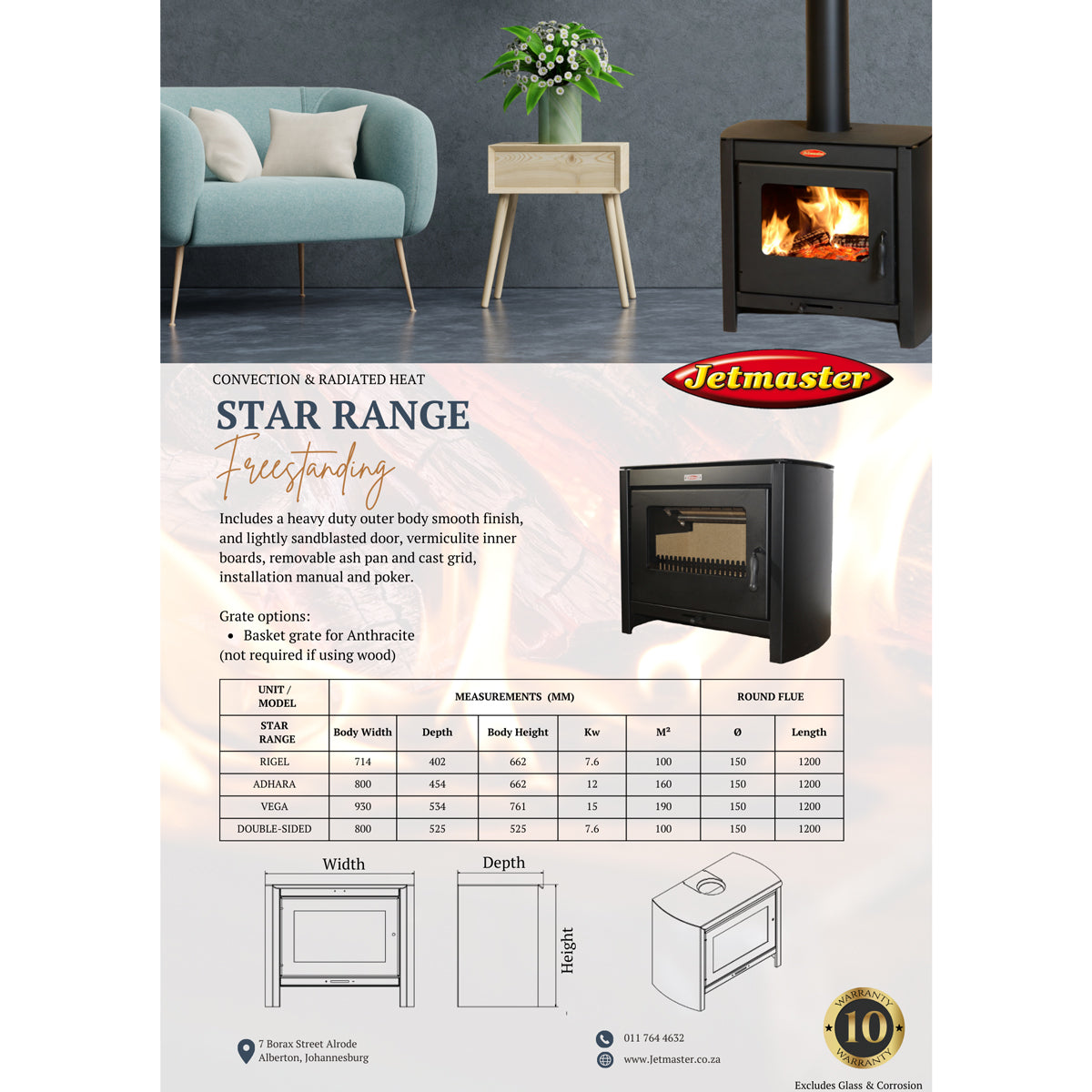 Crafted with a durable mild steel body, the fireplace features a sleek, smooth finish and a lightly sandblasted door that adds to its modern aesthetic. The large windows provide an unobstructed view of the flames, allowing you to fully enjoy the visual appeal of the fire. Inside, the fireplace is equipped with vermiculite inner boards that enhance heat retention, as well as a removable ash pan and cast grid for easy maintenance. To ensure peace of mind, the unit comes with a generous 10-year warranty, demonstrating its quality and longevity. Additionally, it includes a comprehensive installation manual with operating instructions, making the setup process straightforward. Overall, the Adhara Slow Stove combines functionality with stylish design, making it a fantastic choice for those who appreciate high-end living.