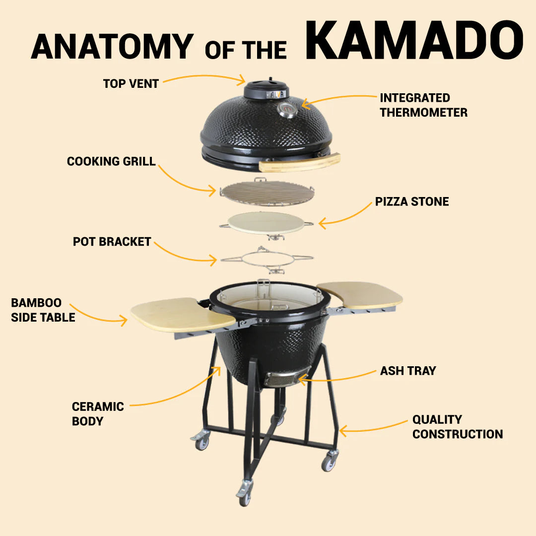 Weatherproof & Durable: Designed for outdoor use, the Kamado BBQ is built to withstand the elements. The ceramic construction is both weather-resistant and long-lasting, while the heat-resistant finish ensures it looks great for years, even after heavy use.