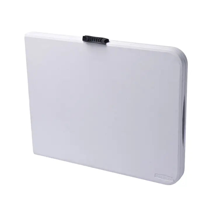 Folding Design: Folds in half with secure lock beneath the tabletop to keep it stable when open. Comes with a built-in plastic handle for easy transport