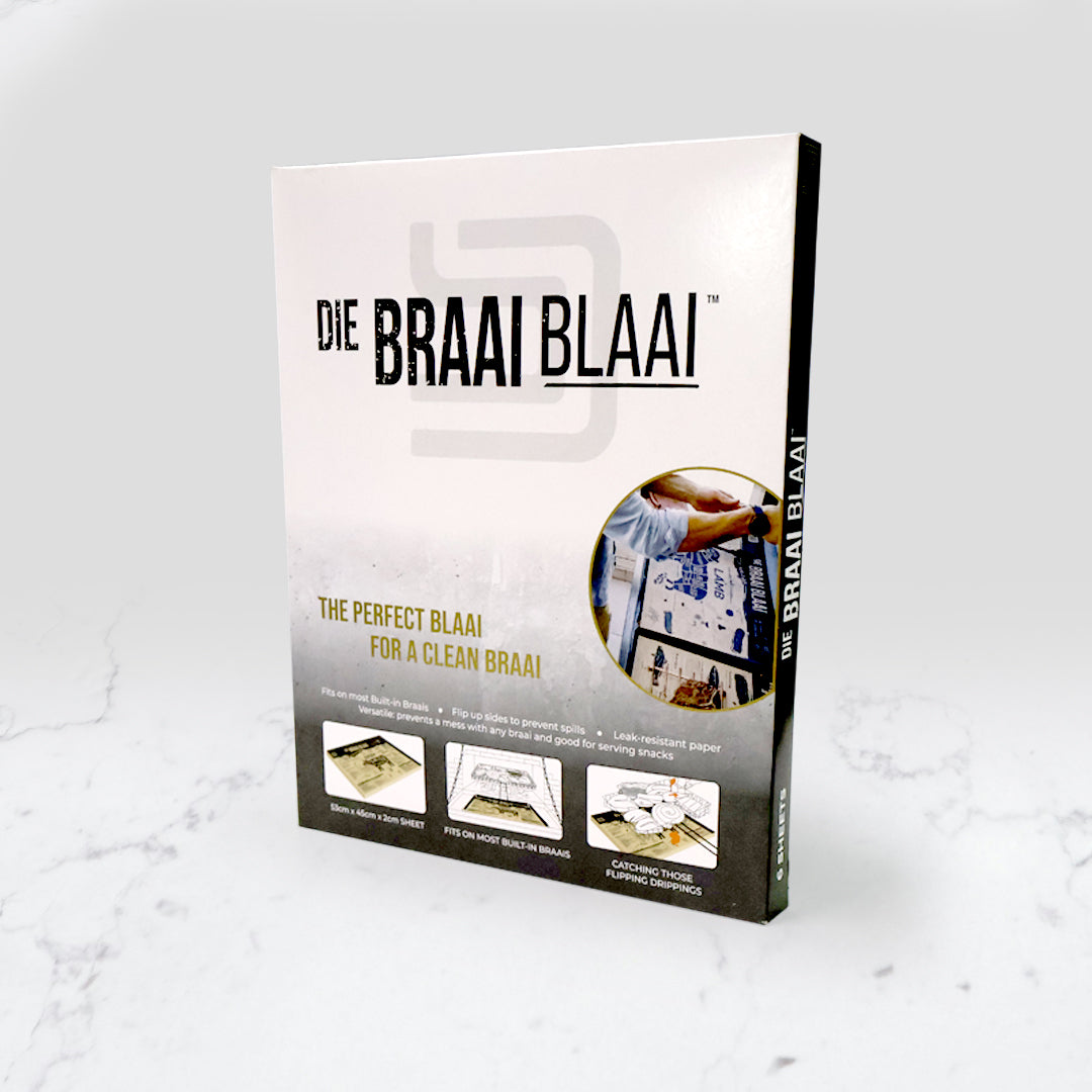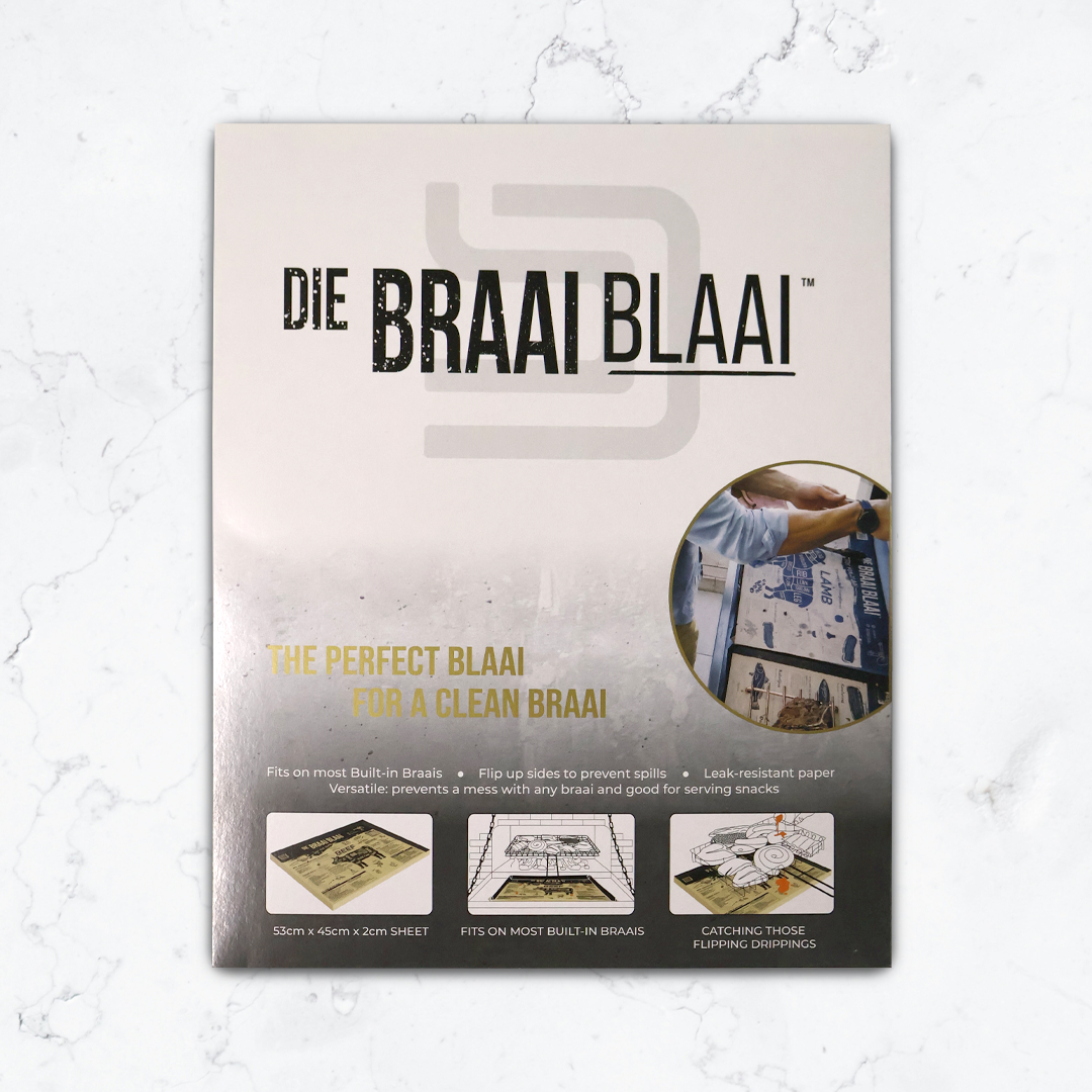 The next big wave to hit South Africa is the BRAAI BLAAI! Get yours NOW! The perfect blaai for a clean braai. Disposable paper sheets to catch the drippings and sauces on your braai area.