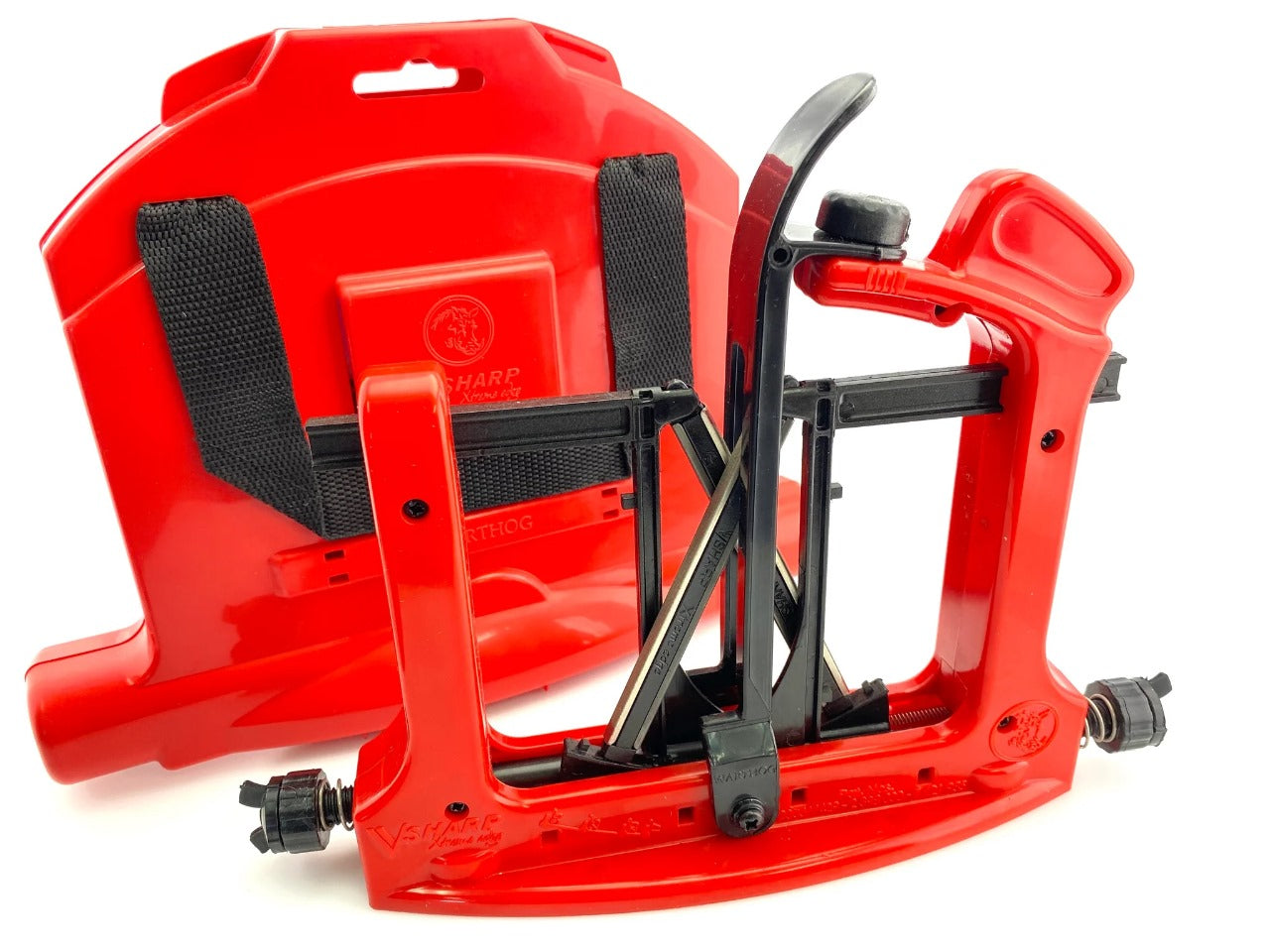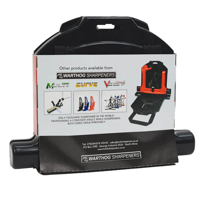 The Warthog Extreme Edge Combo includes the V-Sharp Xtreme Edge (XE) sharpener and a protective Field Case, making it an ideal choice for knife enthusiasts seeking portability and precision. This sharpener features adjustable angle settings with four options (17°, 20°, 25°, 30°) and utilizes high-quality 325 grit natural diamond rods for simultaneous sharpening on both sides of the blade. Optional 600 or 1000 grit rods are available for finer sharpening. Constructed from durable ABS plastic, it weighs just 229 grams and is completely waterproof, ensuring reliability in various outdoor environments. The sharpener includes finishing steels and adjustable spring tension for consistent results, complemented by a 1-year warranty for added peace of mind. Its protective ABS Case snugly fits around the sharpener, guaranteeing safety during transport and use outdoors, making the Extreme Edge Combo a versatile tool for kitchen, fillet, hunting, and other flat-blade knives. It can only be used with an extreme edge sharpener.