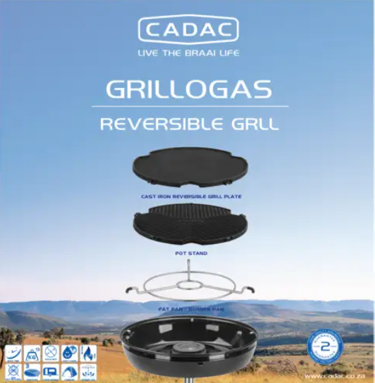 The ultimate choice for grilling enthusiasts who demand performance and durability! Crafted from premium cast iron, this robust grill braai delivers exceptional heat retention and even cooking, perfect for achieving those perfect sear marks and robust flavors. Its versatile design is ideal for everything from juicy steaks to grilled veggies, making it a must-have for backyard braais and outdoor gatherings. With its sturdy construction and easy-to-clean surface, the CADAC Grillogas Cast Iron Grill Braai combines traditional grilling excellence with modern convenience. Elevate your outdoor cooking experience with the CADAC Grillogas – where quality and flavor meet!