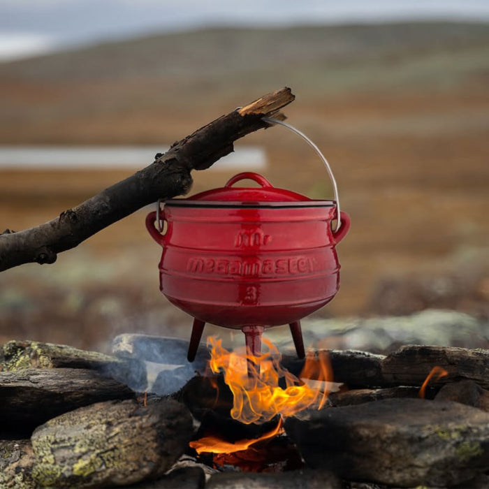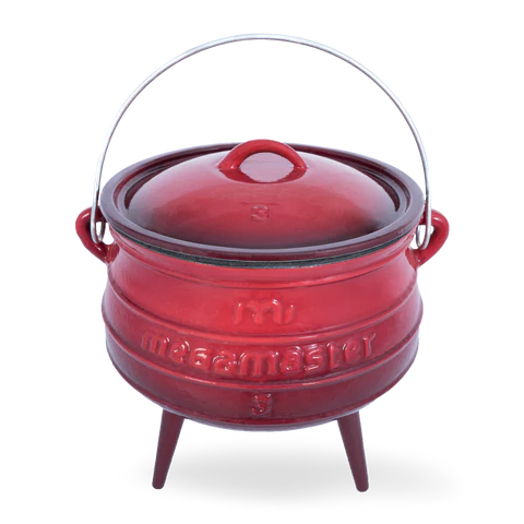 The Megamaster No 3 Enamel Pot offers a stylish feature between the cast iron pot family. The enamel coat provides easy cleaning and maintenance. Comes with matching lid and loop. Add this stylish edition to your braai or kitchen.