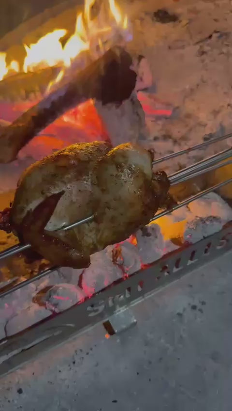 Crafted from 316 stainless steel, SpitAlles is a portable rotisserie with a USB-C rechargeable motor and 6-7 hours runtime. (Charger is not included) Designed for the bush, beach, or backyard, braai whatever you want, wherever you want.