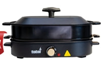 The Totai Electrical Multifunction Cooker (Model 50/TOT-LJ-406) is designed to simplify meal preparation and keep you cooking confidently during load-shedding. This compact countertop appliance combines multiple cooking methods—such as simmering, searing, and steaming—into one energy-efficient unit. Its portable design and easy-to-use controls make it ideal for small kitchens, student housing, patios, and caravans. Equipped with dual side handles, a removable domed lid, and a temperature control knob, it offers precise cooking and dependable heat, perfect for grilling, roasting, or steaming your favorite dishes.