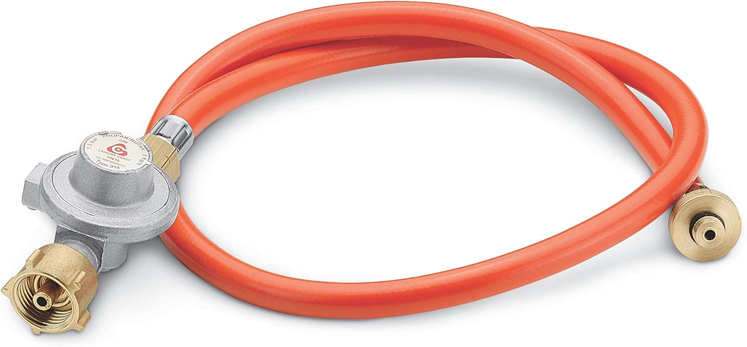 Components: Includes a 90 cm gas hose and a pressure regulator, facilitating the connection to larger gas cylinders.