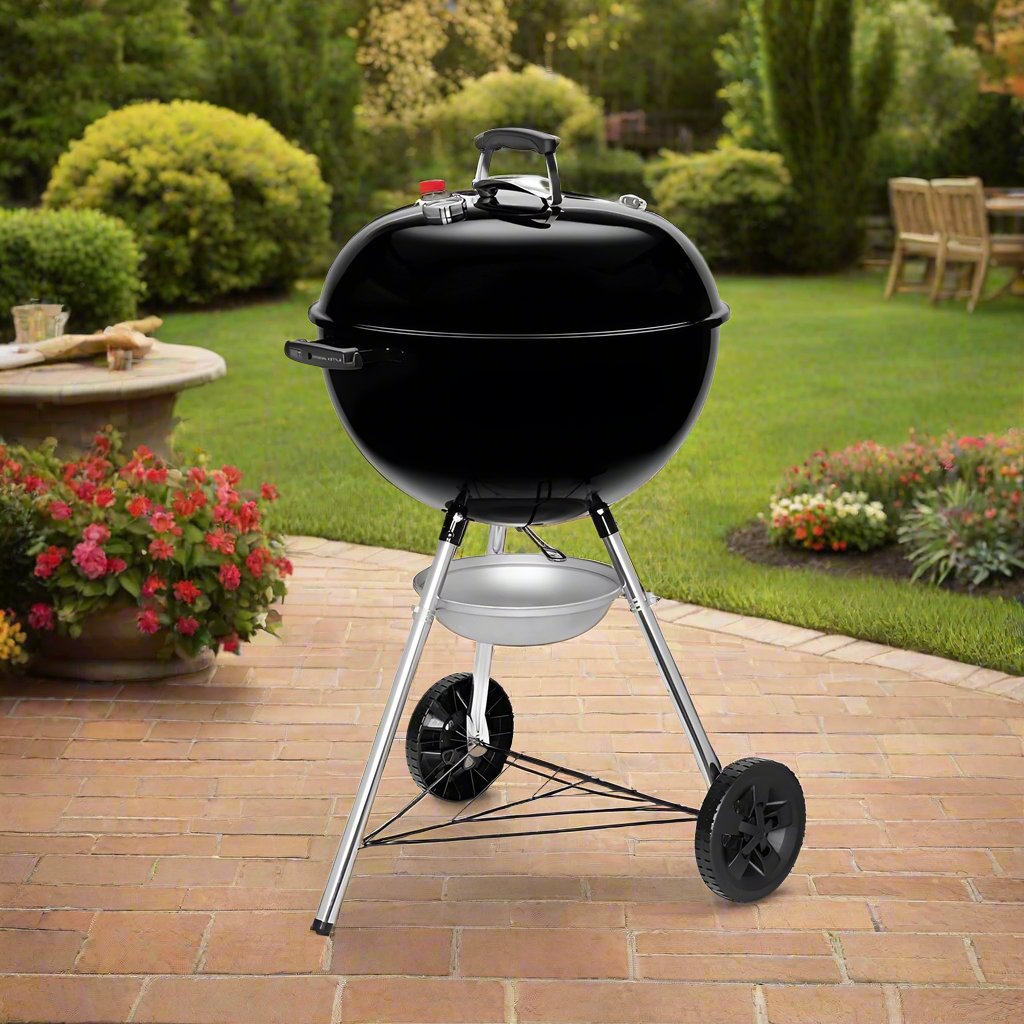 The Weber Original Kettle 57 is a luxury barbecue for quality grilling. Featuring a plated steel cooking grate, porcelain-enameled bowl, and lid, heavy-gauge steel fuel grate, plus an integrated one-touch cleaning system, this barbecue provides a hassle-free grilling experience. Its rust-resistant ash catcher and built-in lid thermometer allow for optimal convenience and control, while its angled lid hook and tool hooks keep your grilling utensils nearby. Elevate your grilling game with the Weber Original Kettle 57.